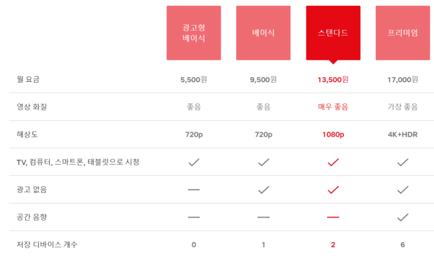 넷플릭스요금제 > 가장 저렴한 광고형 베이식 / 스탠다드 / 프리미엄 화질, 해상도, 저장가능여부등의 차이가 있습니다.