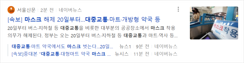 오늘은 드디어 대중교통 마스크 해제를 정부에서 발표하였습니다.