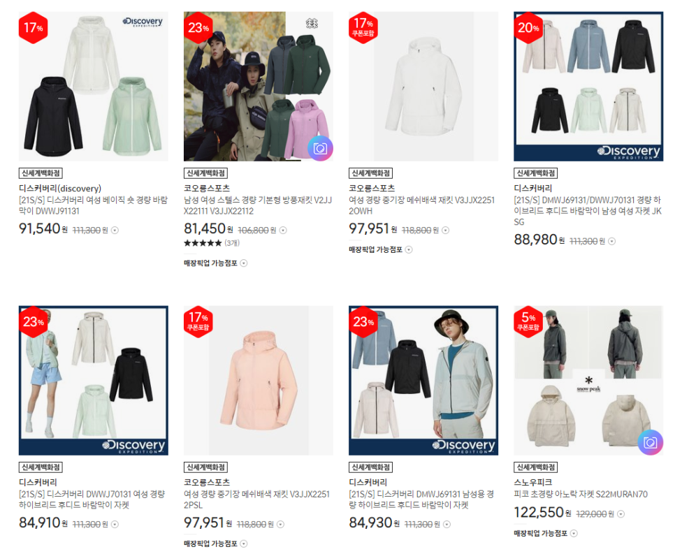 추천하는 브랜드는 디스커버리, 코오롱스포츠, 블랙야크, K2 등등...